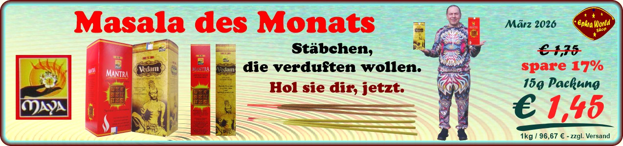 - Masala RäucherstäbchenCycle Brand Dasara Masala RäucherstäbchenInhalt: 14 St. - ca. 25g RäucherstäbchenPreis pro Packung4,45 €inkl. MwtSt / zzgl. Versand1 St. / 30 ctSofort lieferbarSofort lieferbar